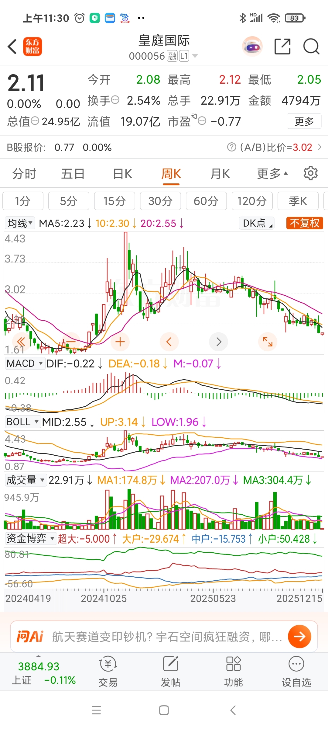 $皇庭国际(SZ000056)$ 本周已经见底,上周到2.6,本周至少到2.3