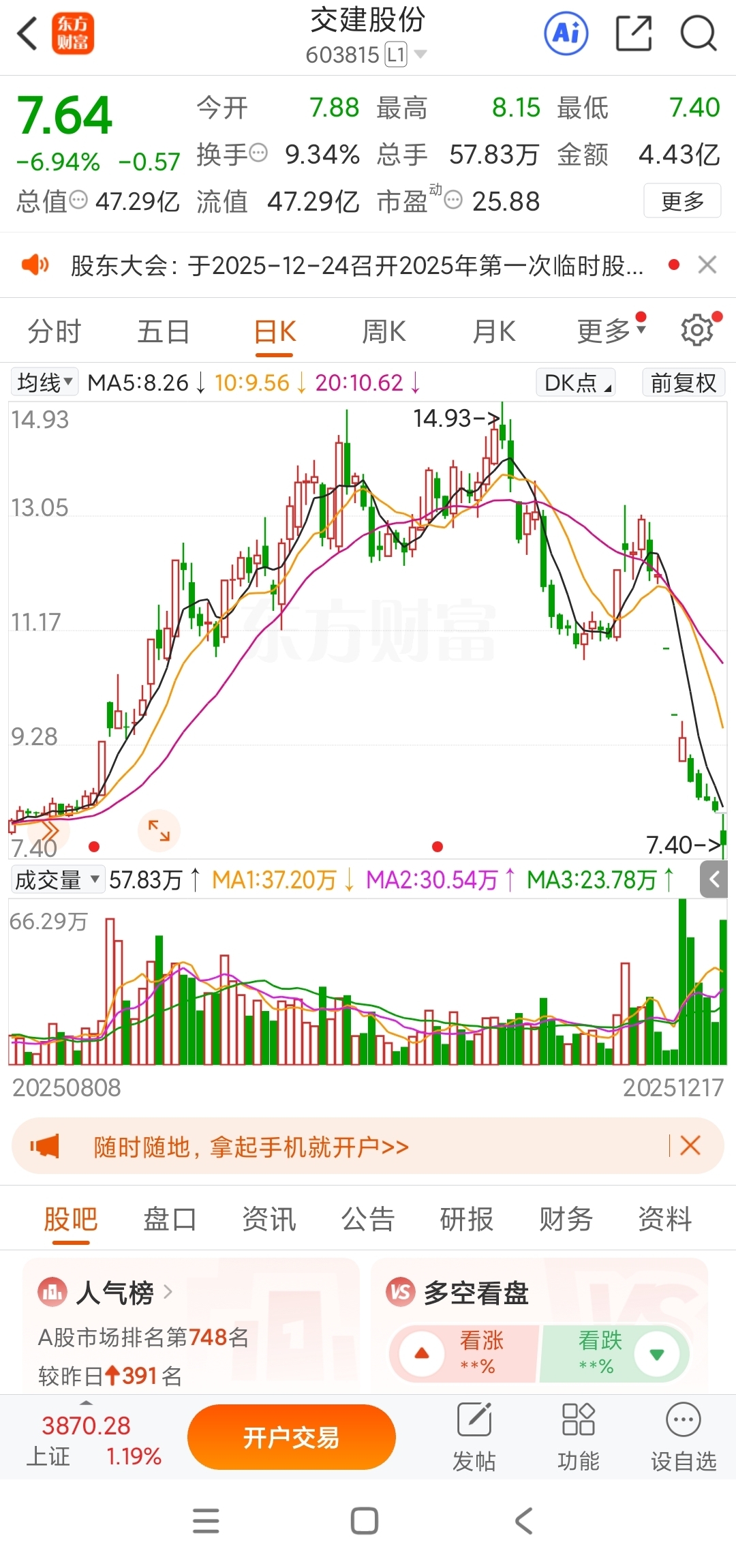 交建股份,看看这个,大家会好受很多,8天一个腰斩,明天可能还会跌停,有的时候就是