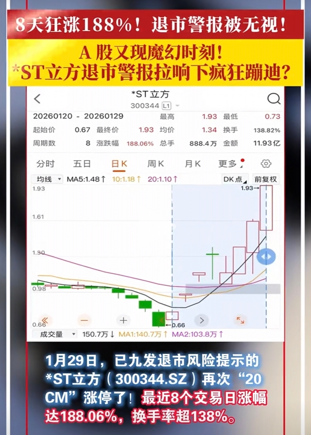 皇庭国际没出息*ST立方快翻2倍了