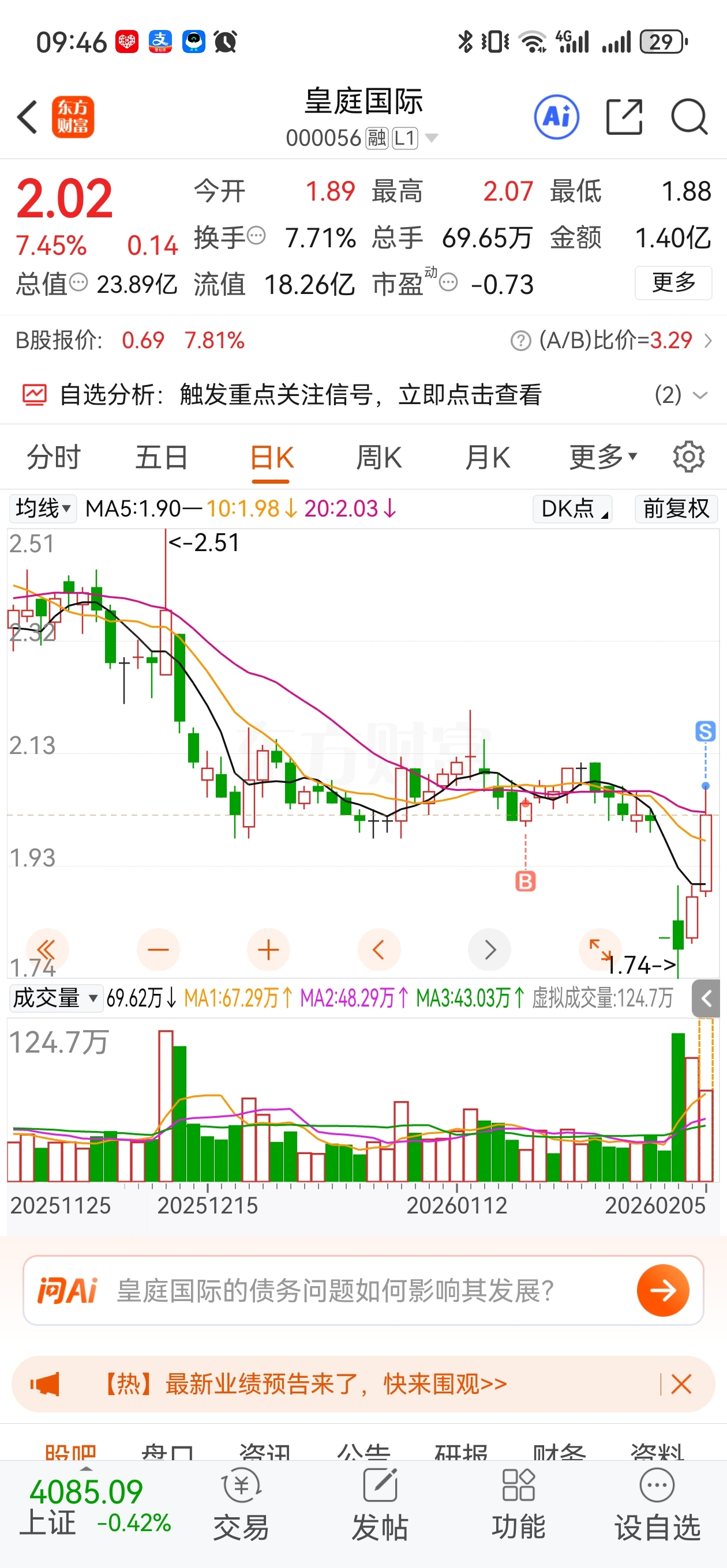 $皇庭国际(SZ000056)$ 擦,千挑万选选了一个暴雷的,还好命好逃出来了
