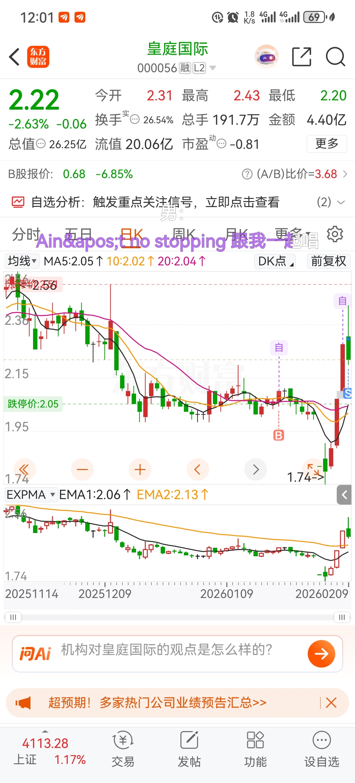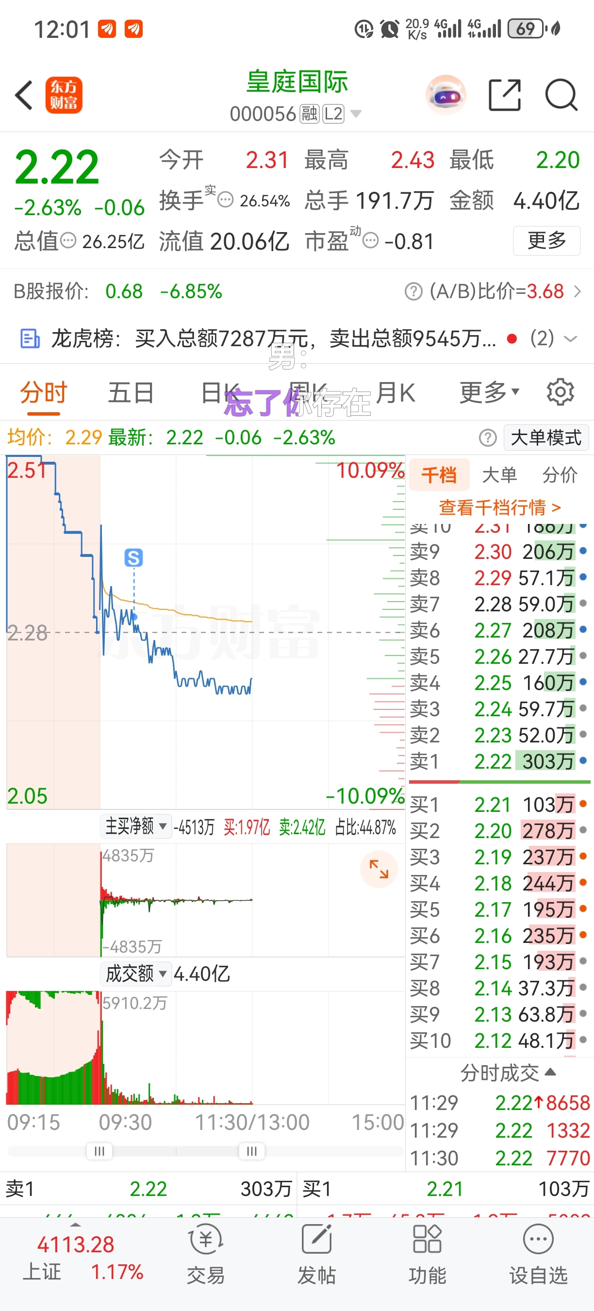 $皇庭国际(SZ000056)$ 一年不见 昔日皇庭沦落至此 现在的价格的确更具性价比 可我被这个市场磨炼了三年 勇气早已消耗殆尽 现在的我得时刻保持稳健 今天我等了你三波 虽然还是有些许不舍 但我在最危难的时候陪伴过你了 如果今天是洗盘 那你成功把我洗掉了 皇庭宝宝 告辞 有缘再见