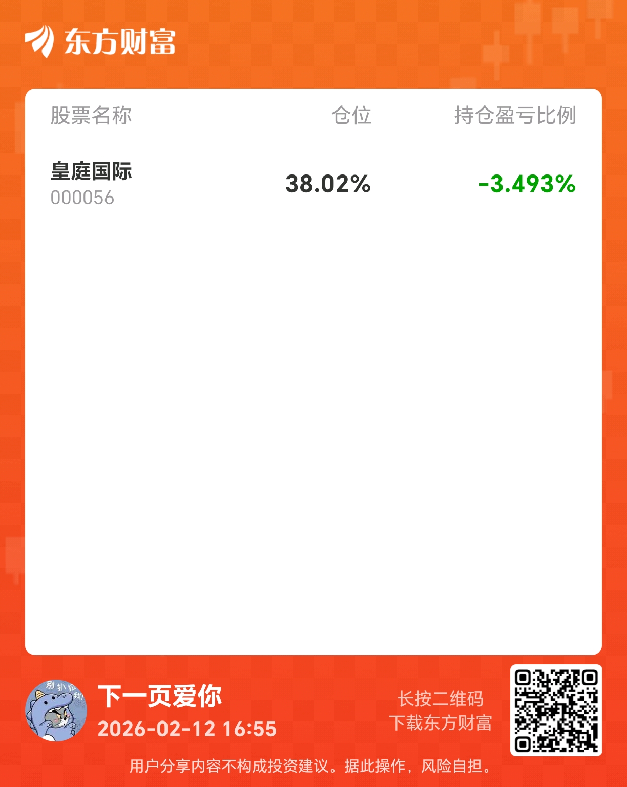 $皇庭国际(SZ000056)$ 格局了一下,希望明天不要1分钱玩一天,给个节前红包吧