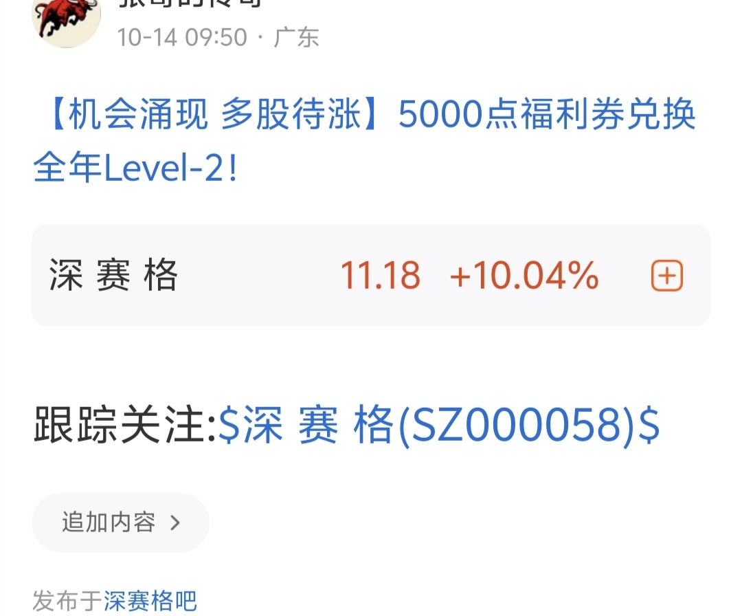 $深 赛 格(SZ000058)$ 今天也上——板了