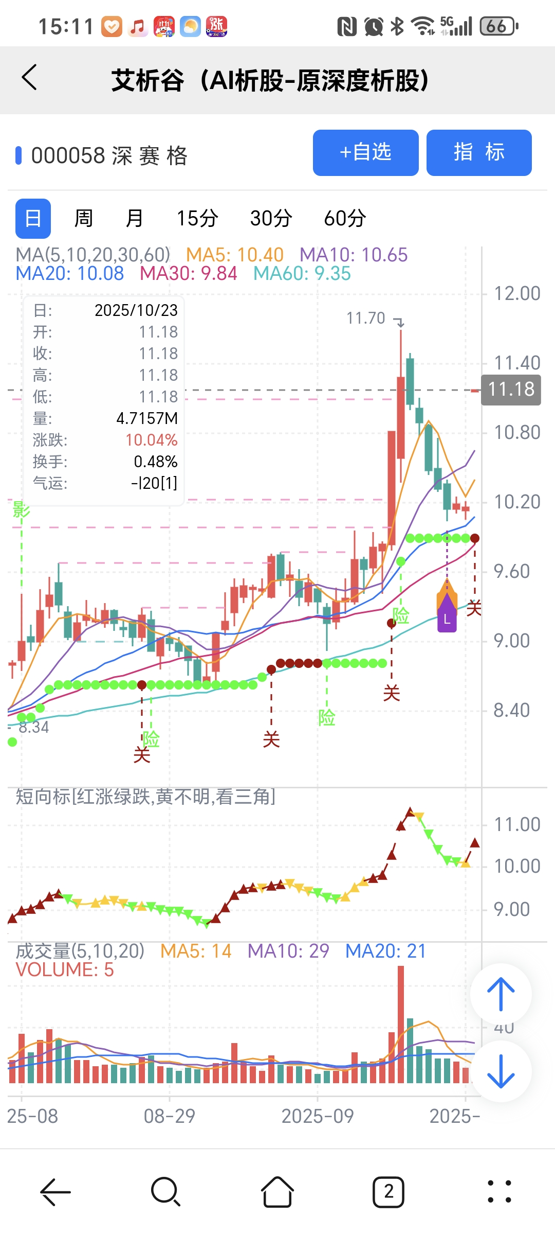 红绿小圆点是艾析谷的量化指标-超级短趋线,是趋势跟踪+突破类的量化指标,完全免费