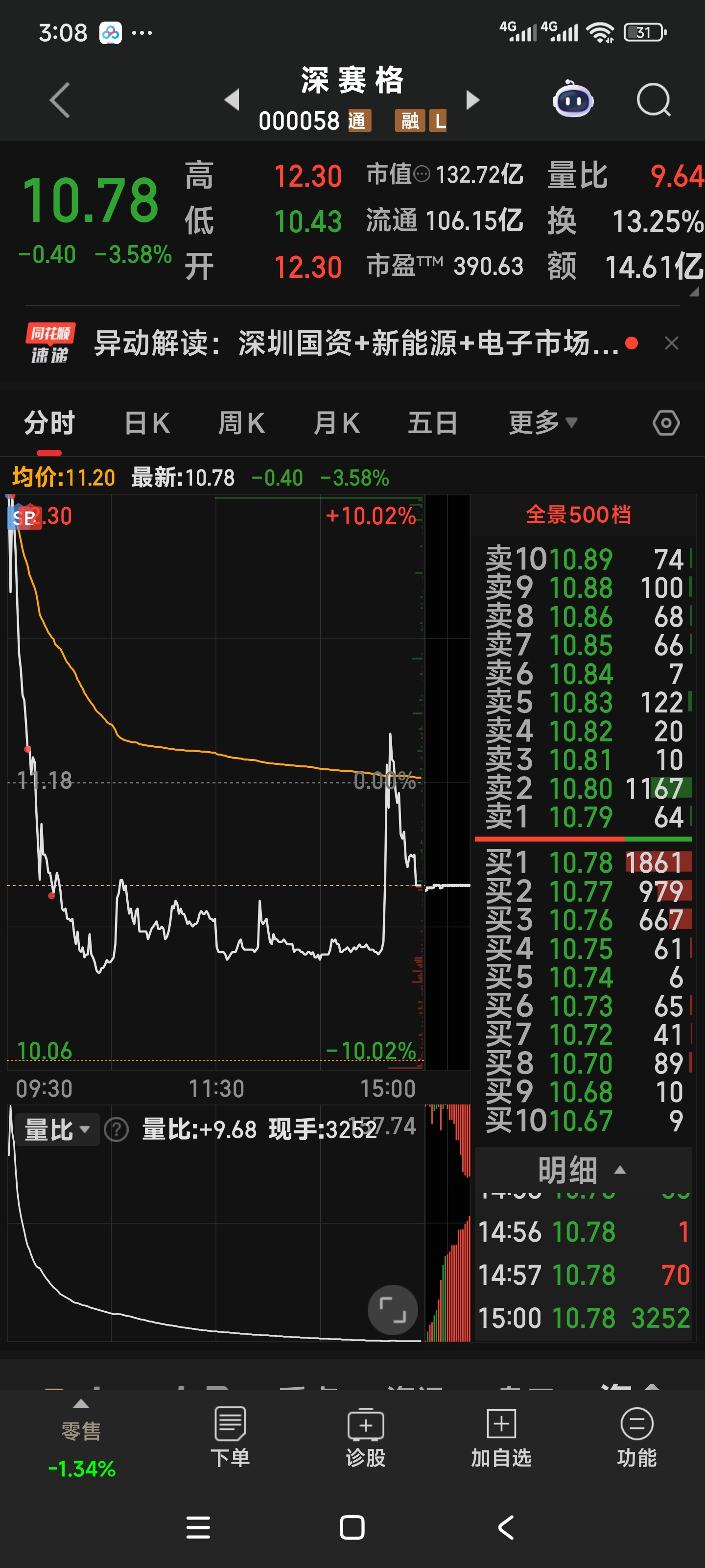$深 赛 格(SZ000058)$ sb战法,集合竞价卖了,上板又打回来,以为真龙,万万没想到是一条蛇蛇。