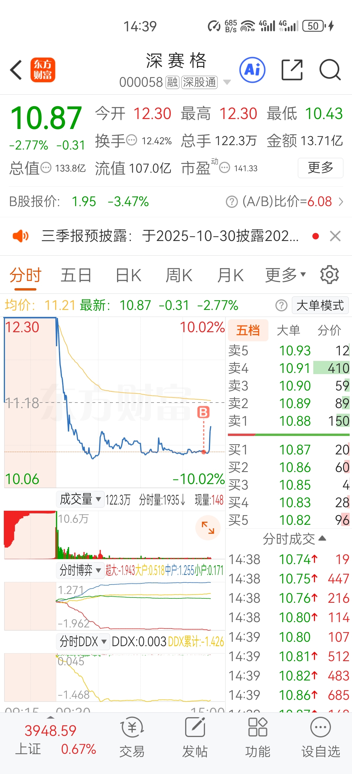 $深 赛 格(SZ000058)$ 今天整了个投路问题,买进后两分钟有那么多人和我想的一样。