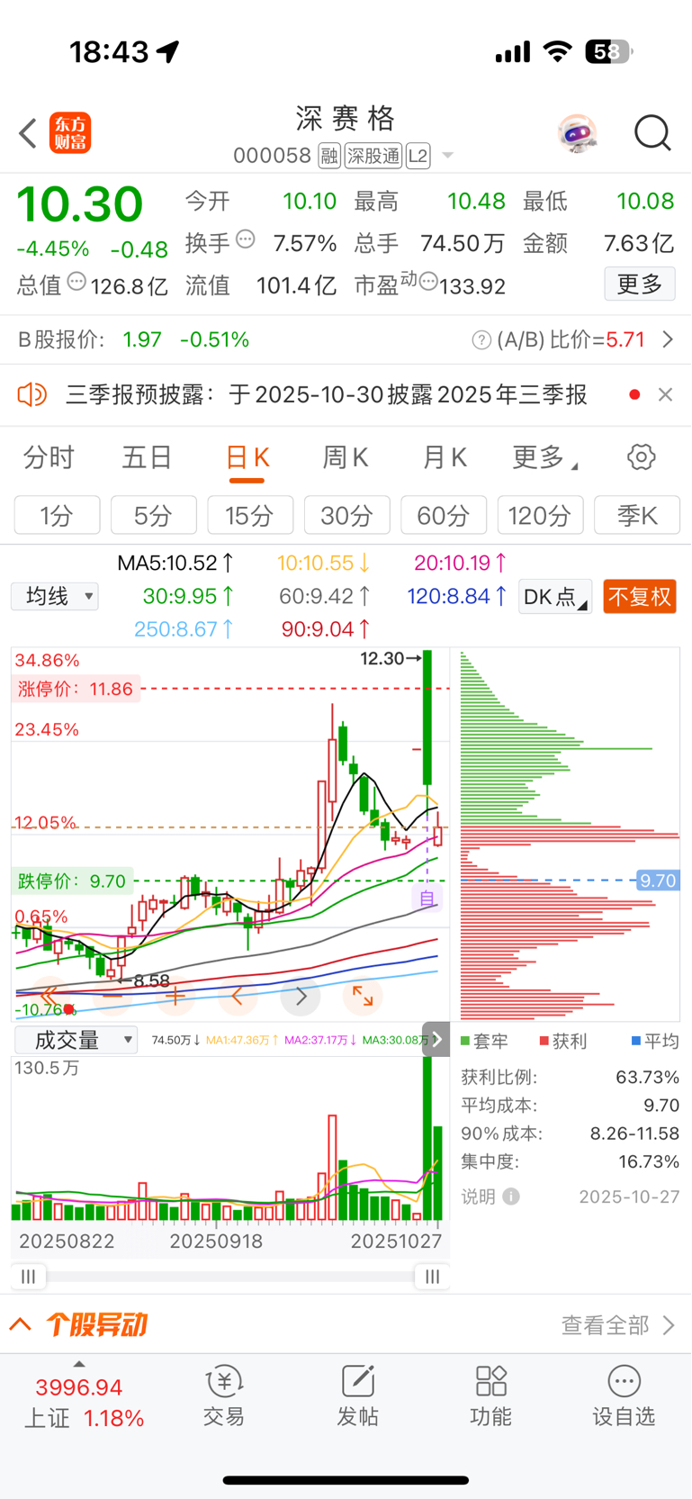 $深 赛 格(SZ000058)$ #收盘点评# 有点像前几天众泰汽车的走势