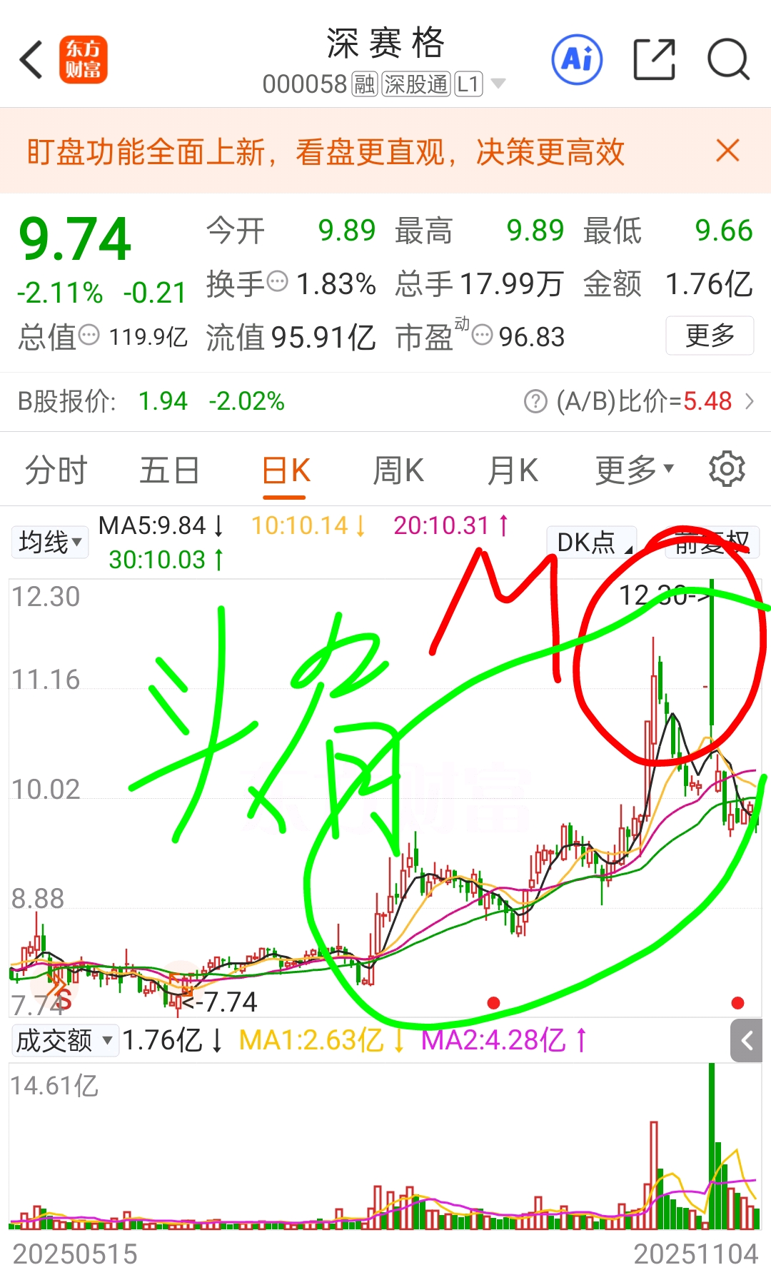 $深 赛 格(SZ000058)$ 这M头复合头肩顶雏形,怎么破?