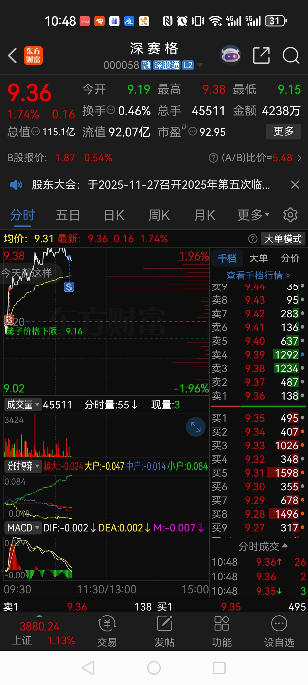 $深 赛 格(SZ000058)$ 你可以涨了吧