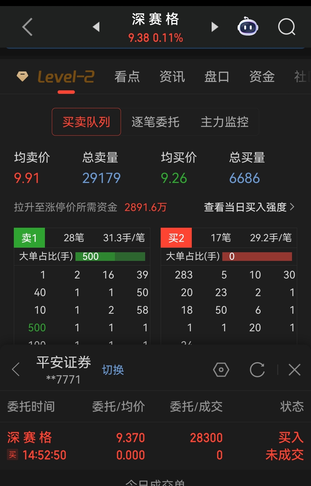 $深 赛 格(SZ000058)$ 周一准备追,服了,挂半天刚但我没买进。