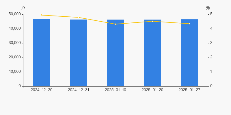 2024年12月20日至今,公司股东户数有所下降,区间跌幅为0.51%。2024年12月20日至2025年1月27日区间股价下降12.12%。