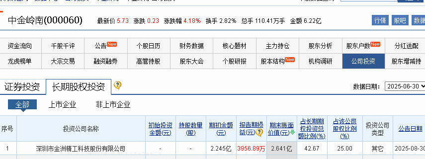 中金岭南参股深圳市金洲精工科技股份有限公司,该公司是中国最大的设计和生产硬质合金钻头、铣刀以及IT用行业精密刀具和精密模具的高科技企业;是中国PCB用硬质合金钻头行业和中国汽车空调翅片级进模制造的领先企业,也是国际PCB用硬质合金钻头行业的先进企业。