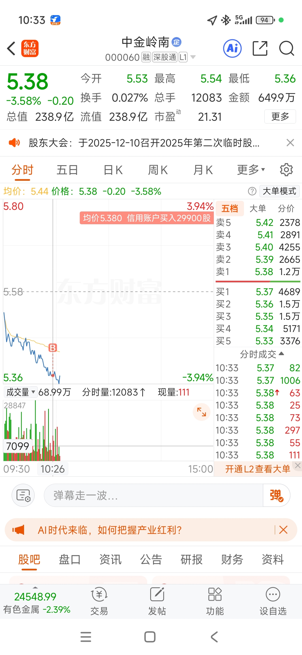 $中金岭南(SZ000060)$ 5.38加一层仓位