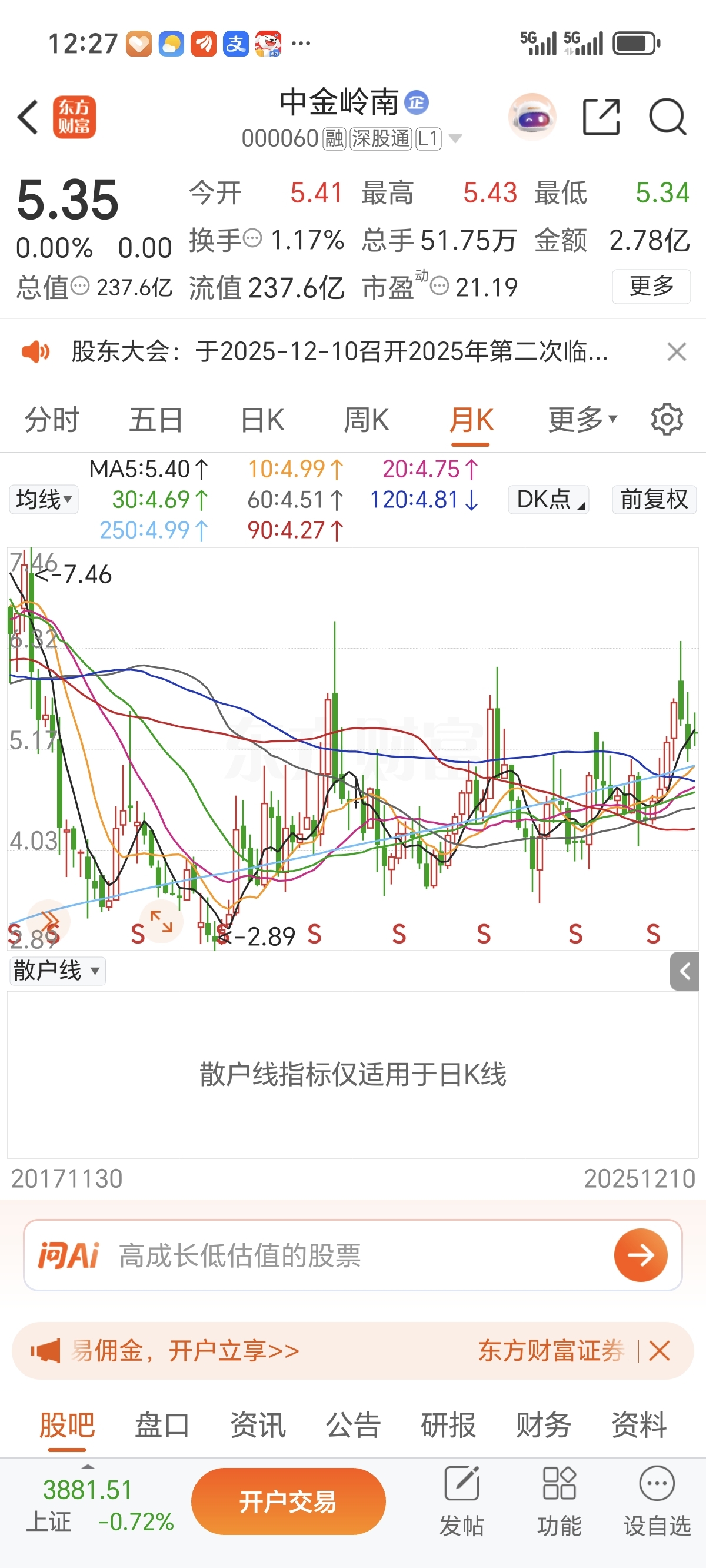 $中金岭南(SZ000060)$ 月线图有点不上不下的感觉,
