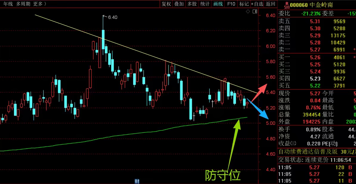 $中金岭南(SZ000060)$ 近期主要是震荡回落为主,接下来主要看能否带量突破头上的趋势线,站稳就舒服了,可以看成调整结束,但如果上不去,就还是要震荡折腾,脚底大均线5.08位置作为防守位应对,有效跌破就得大幅减仓应对,防着潜在的回落下杀风险。#复盘记录# #炒股日记#