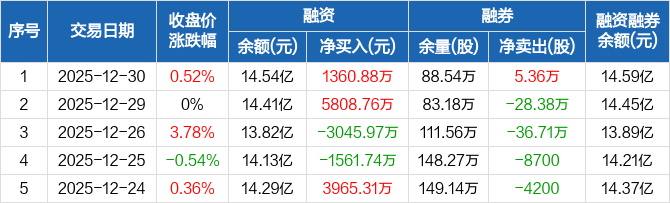 中金岭南:融资净买入1360.88万元,融资余额14.54亿元(12-30)