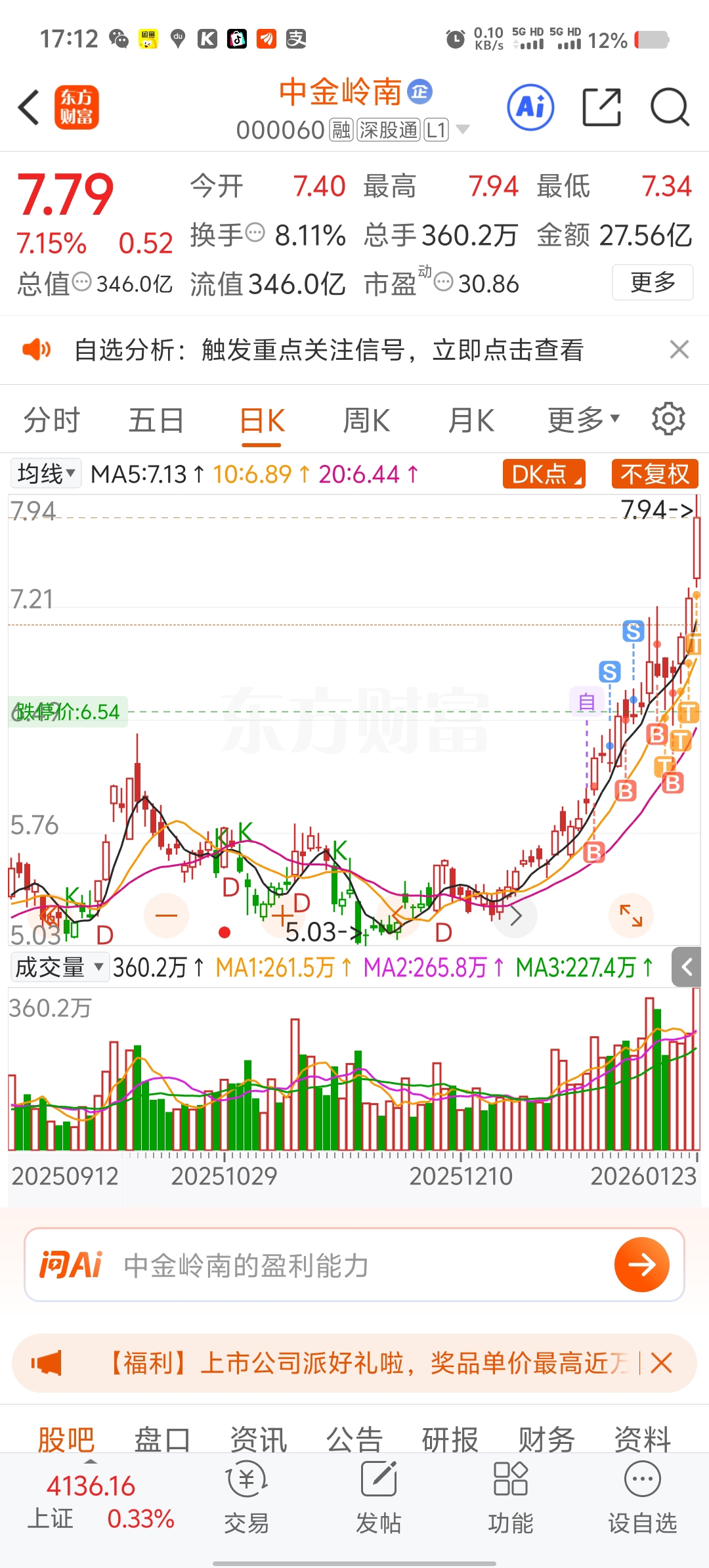 $中金岭南(SZ000060)$ 涨得我害怕,也不敢卖,也不敢买了。别动,赚的更多,动来动去反而不挣钱。