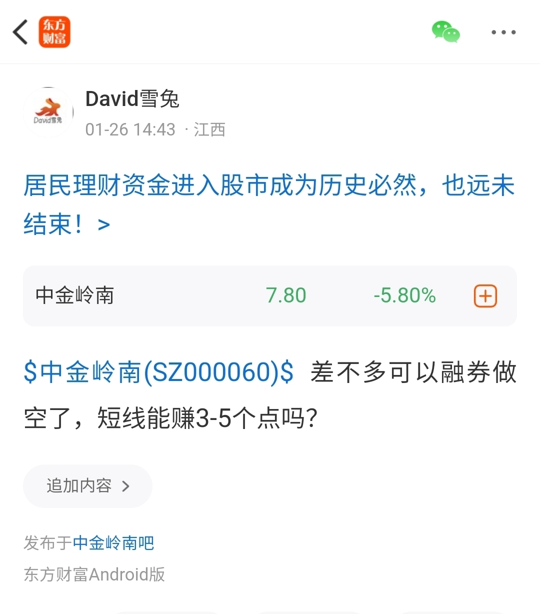 $中金岭南(SZ000060)$个人感觉要是按照他的说法,在昨天做空这些股票理论上是能挣到钱的,我感觉顶多能挣5000~2万块钱左右。毕竟这家公司融券余额在流通设施的比例仅仅最高达到700万左右,也就是说只有少数人中的少数人获得了雀园之后,做空这支股票才能有挣钱的机会。加上这个人挺聪明,这个人有知识杠杆,这个人发现一只股票股价连续上涨多日之后上涨动能衰竭,在正确的时间,正确的位置进场,最终挣到钱了。上哪说理去,真的佩服这个人。