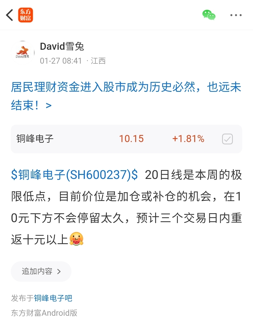 温馨提示: 1.根据《证券法》规定,禁止编造、传播虚假信息或者误导性信息,扰乱证券市场;2.用户在本社区发表的所有资料、言论等仅代表个人观点,与本网站立场无关,不对您构成任何投资建议。用户应基于自己的独立判断,自行决定证券投资并承担相应风险。《东方财富社区管理规定》
