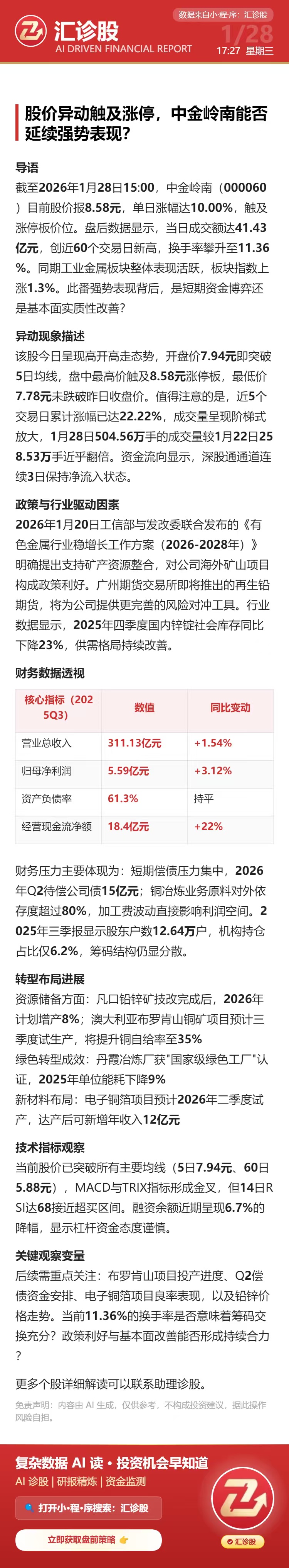 股价异动触及涨停,中金岭南能否延续强势表现?