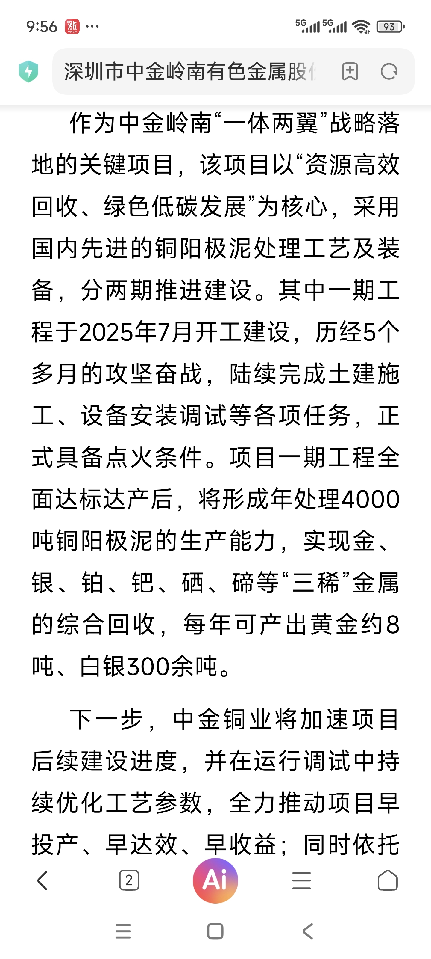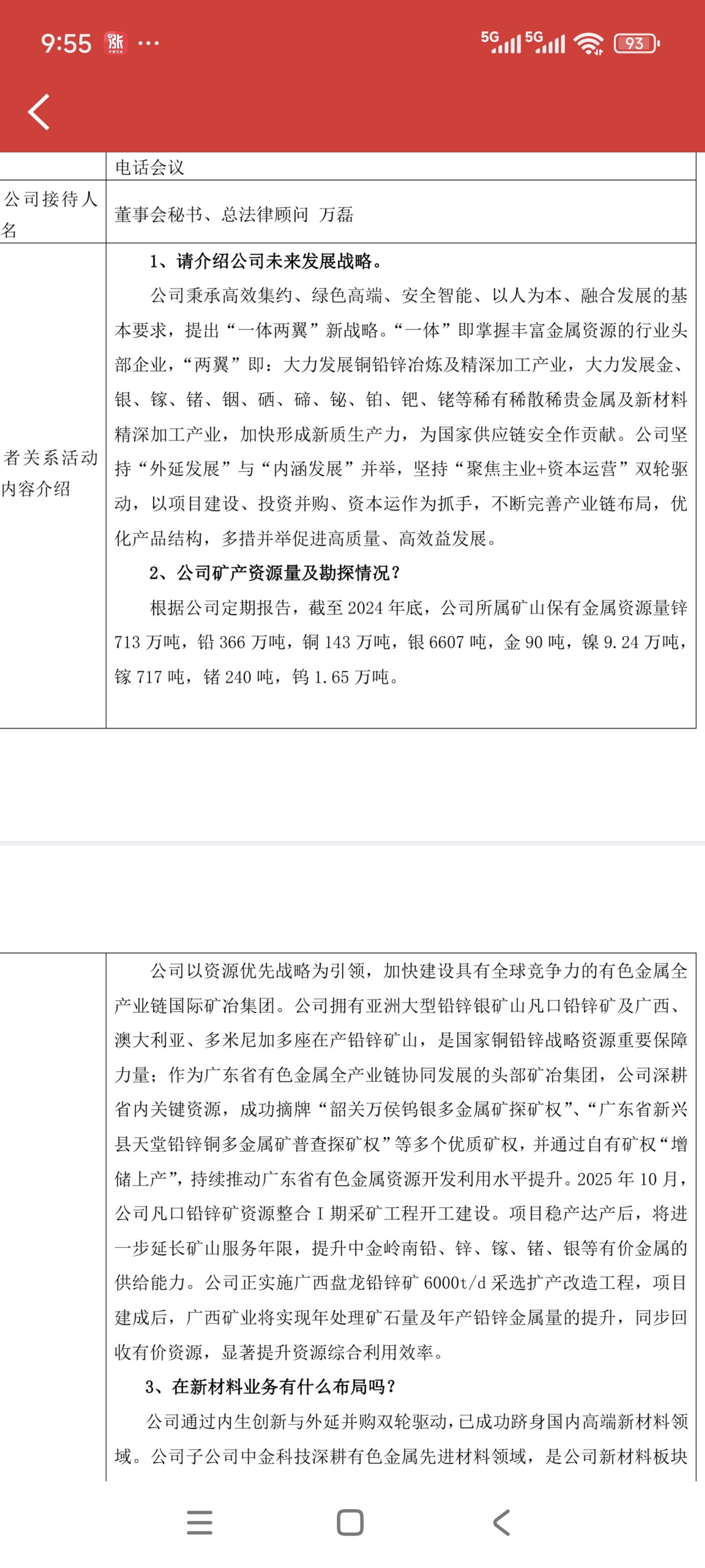 $中金岭南(SZ000060)$ ,官方的信息,矿产含银接近7000吨,金90吨 钨1.6万吨,锌730万,中金铜业4000吨阳极泥回收大量金银,有色里面价值严重低估,几乎在ai里面没有推荐。