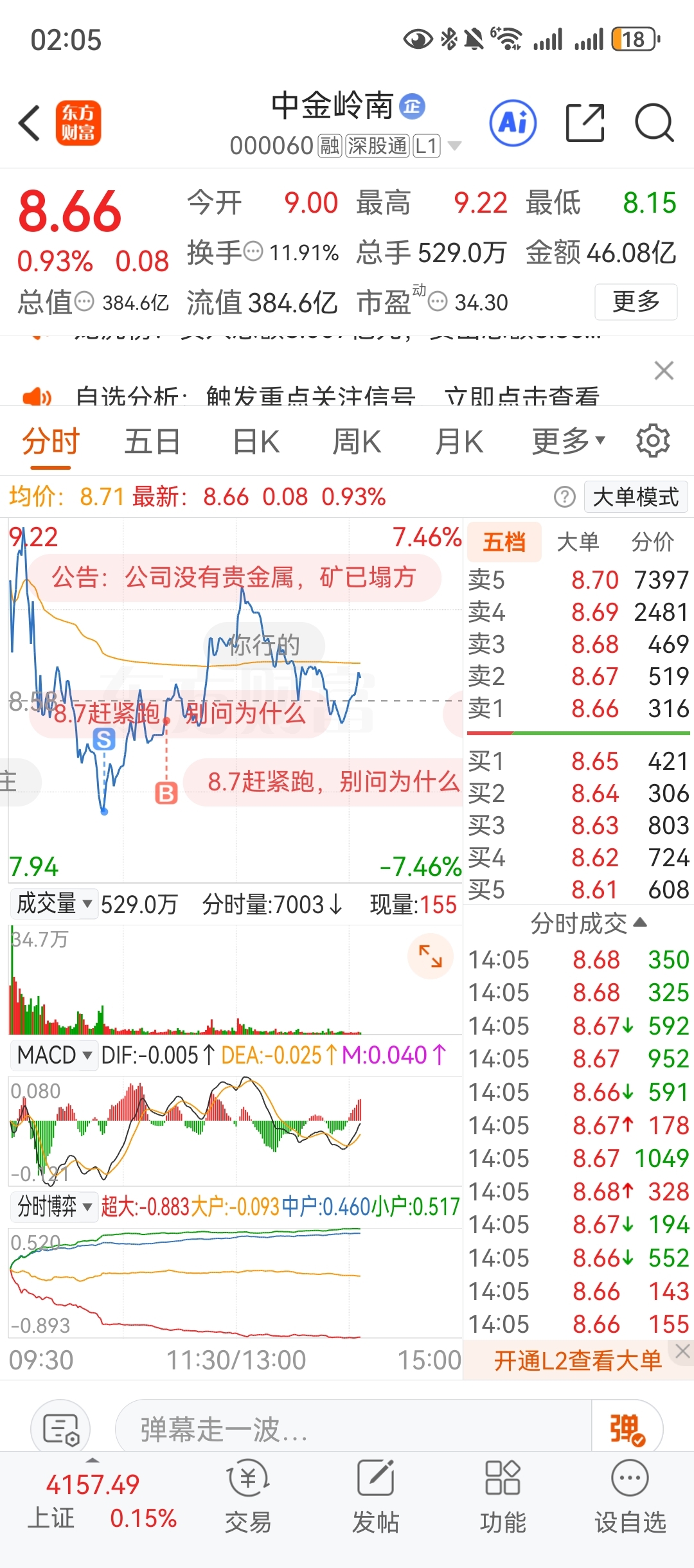$中金岭南(SZ000060)$ 没人比我厉害吧 最低点出了。在山中间接回来