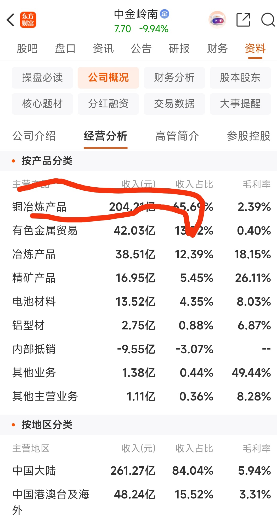 中金岭南主业是炼铜