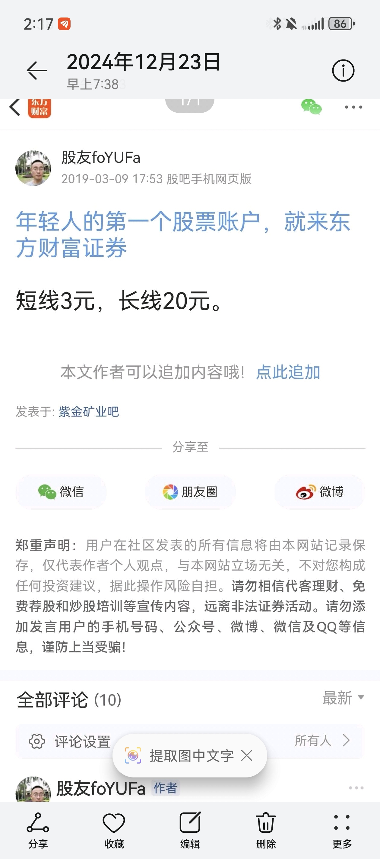 温馨提示: 1.根据《证券法》规定,禁止编造、传播虚假信息或者误导性信息,扰乱证券市场;2.用户在本社区发表的所有资料、言论等仅代表个人观点,与本网站立场无关,不对您构成任何投资建议。用户应基于自己的独立判断,自行决定证券投资并承担相应风险。《东方财富社区管理规定》