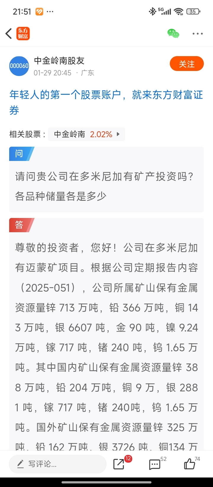 $中金岭南(SZ000060)$ 迈蒙矿铜很多啊,董秘有回复!