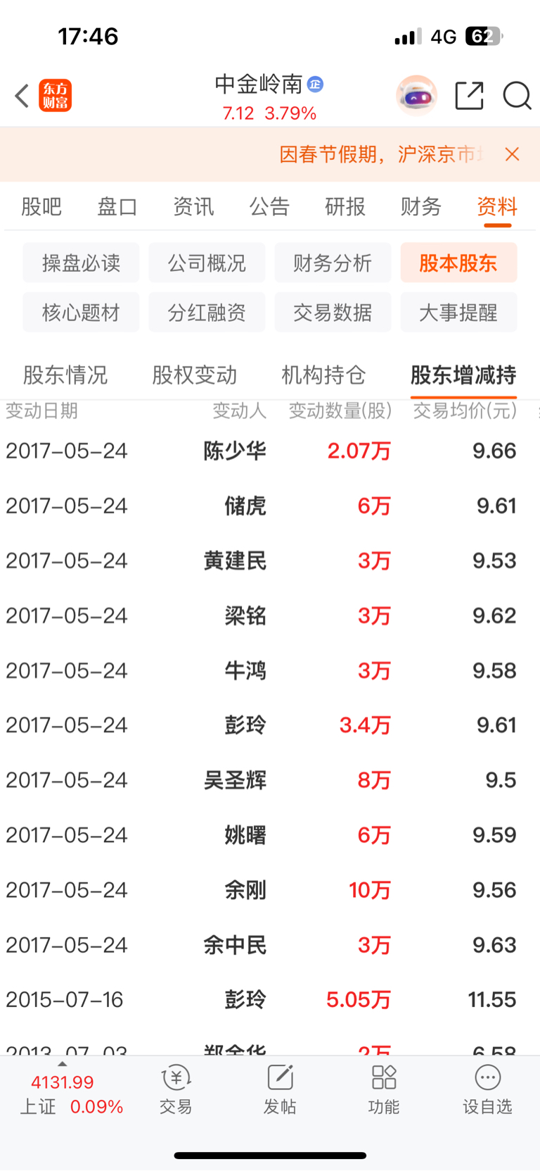 $中金岭南(SZ000060)$ 中金岭南公司高管股东成本2017年平均持股都在9.5元以上!有的高管股东持股在11块以上。
