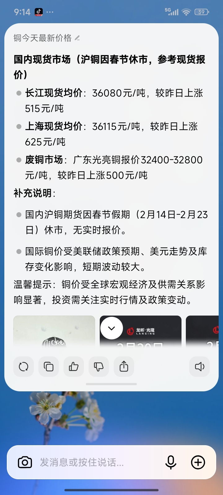 铜价格开始上涨