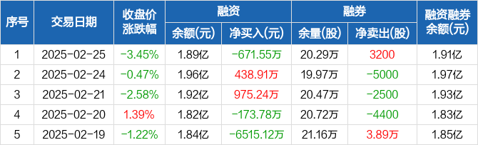 农产品:融资净偿还671.55万元,融资余额1.89亿元(02-25)