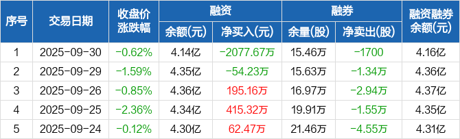 农产品:融资净偿还2077.67万元,融资余额4.14亿元(09-30)