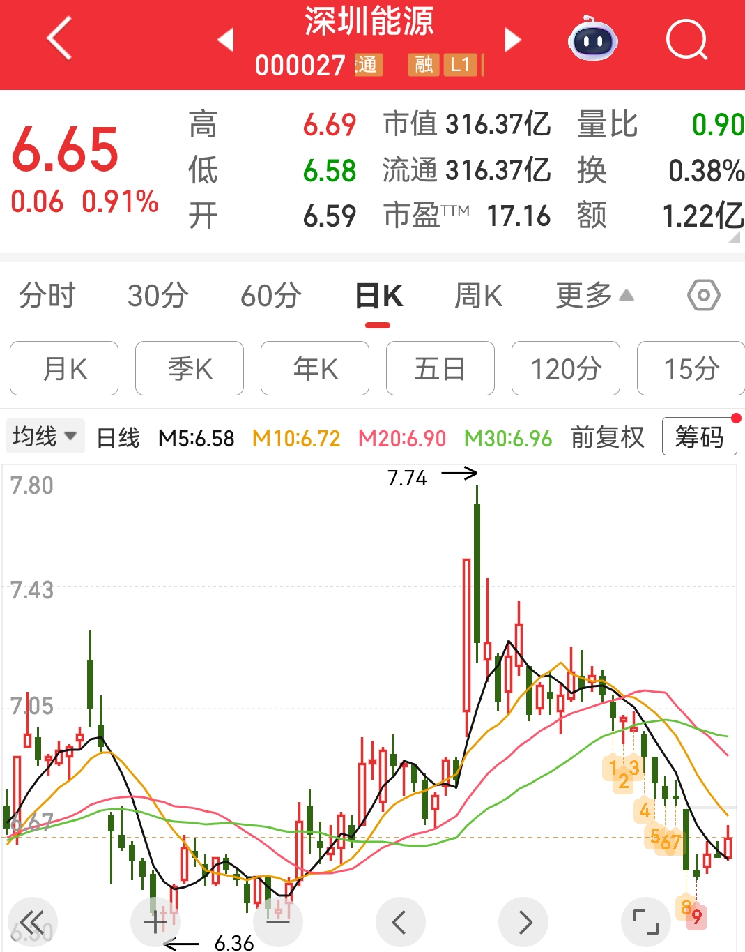 $农 产 品(SZ000061)$ 这波下跌什么时间到底,请参考深圳能源,要结合量价来看