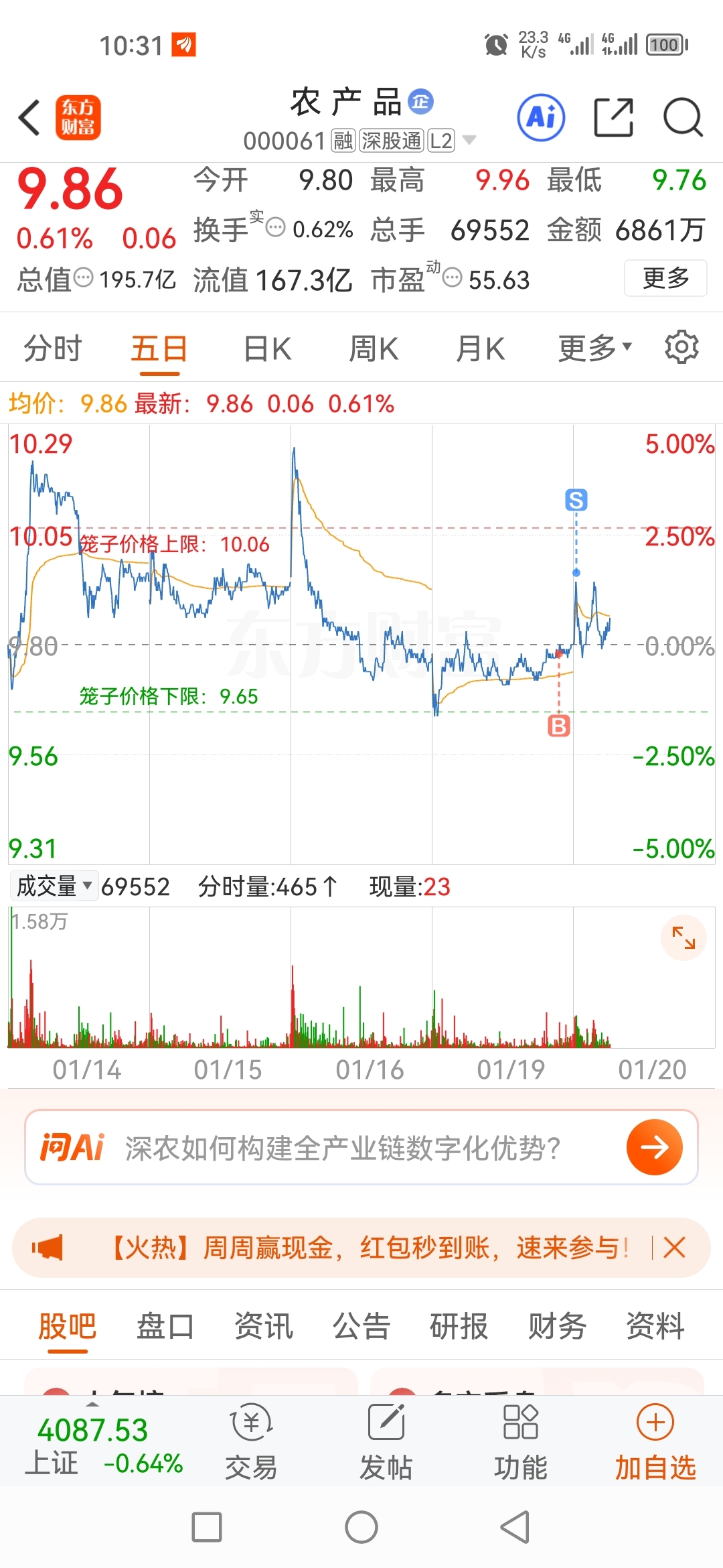 $农 产 品(SZ000061)$ 一口就走