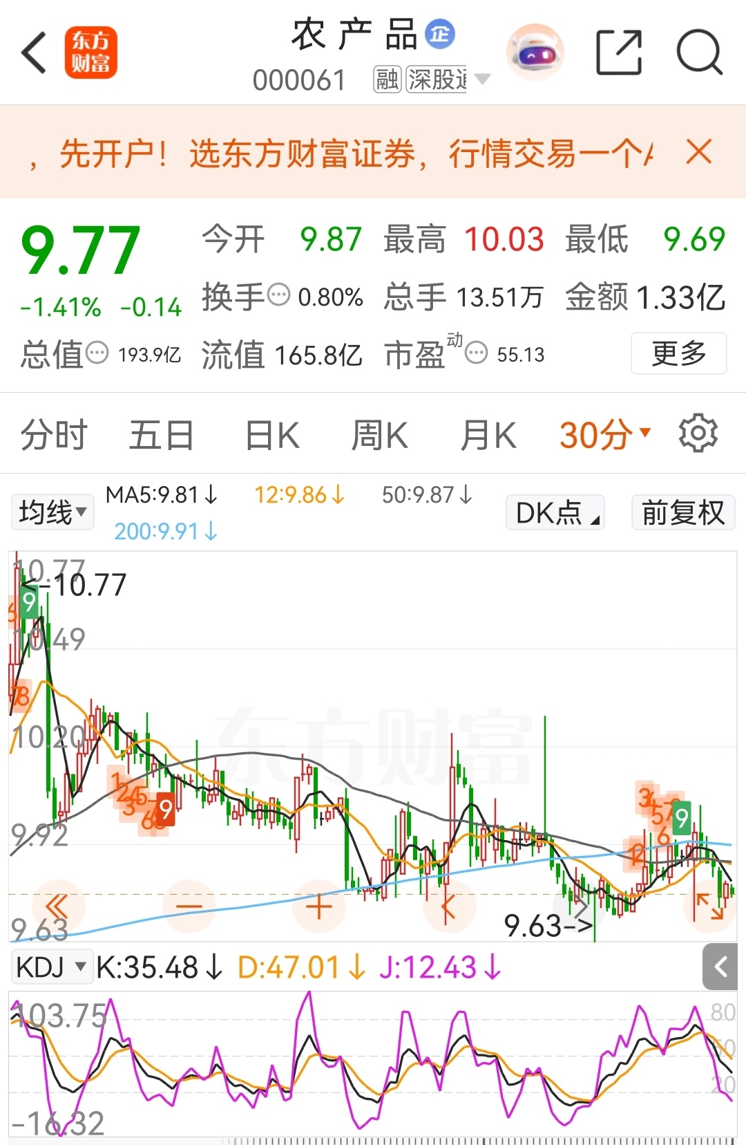 $农 产 品(SZ000061)$ 所有均线死叉下行,一路向北!奉劝各位,不要听那些庄坨儿,快跑