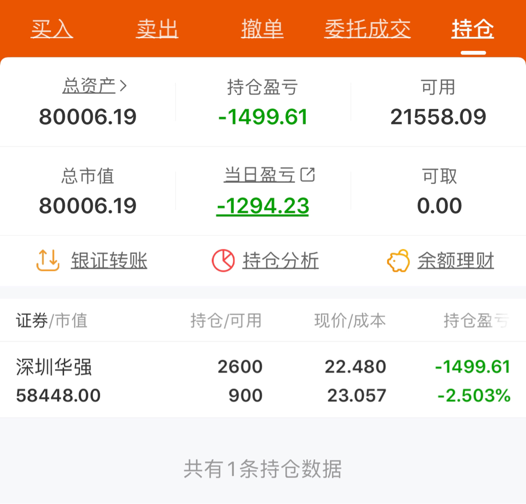 今天大盘跌得狠啊,-1个点加仓了2万,-0.35想等到红再抛结果等来的是-3个点梭哈了,尾盘拉了一下,-2.2抛了2万,现在安逸了底仓变成了6万,争取下周能把2万给抛出去,差点全仓,心好慌。
