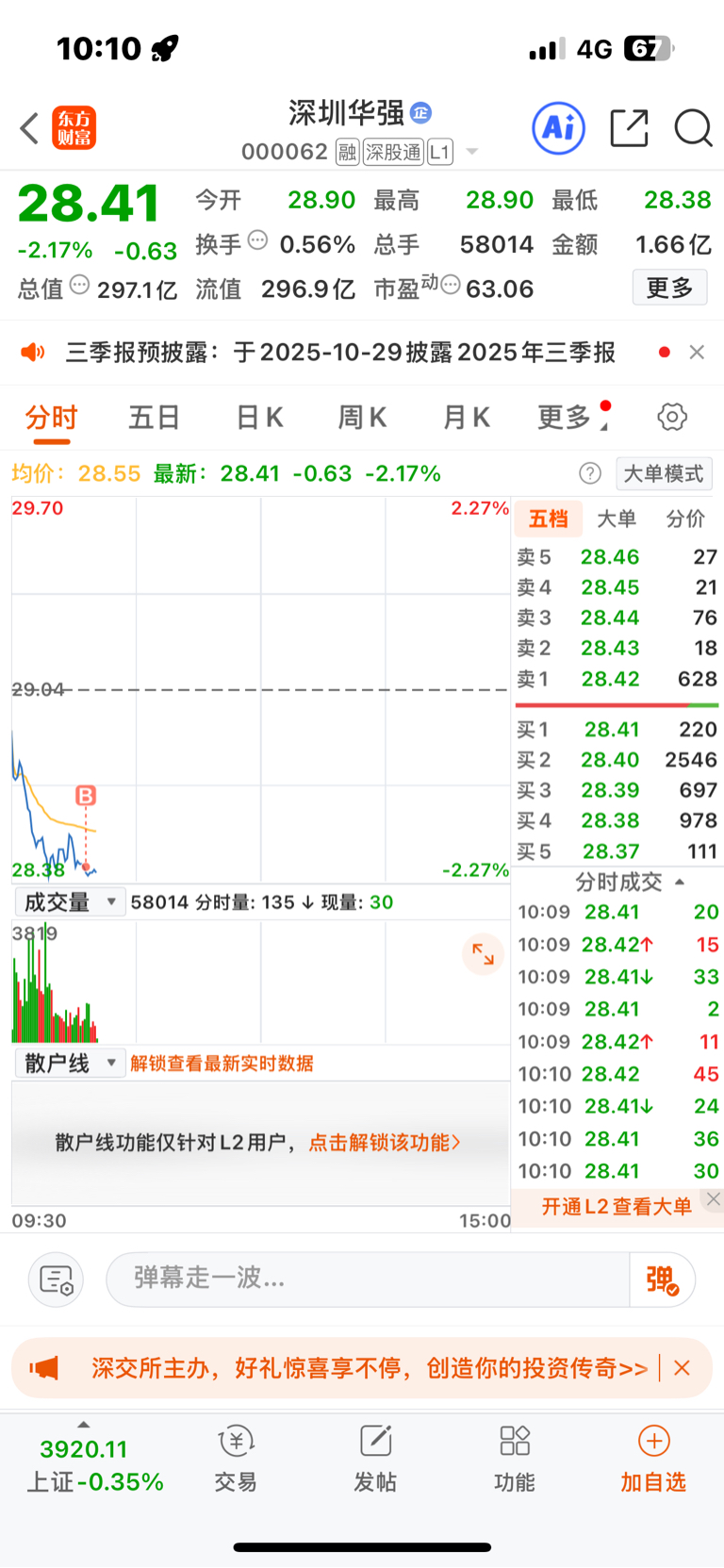 $深圳华强(SZ000062)$ 本人今日第一一笔,本人购买股票的逻辑就是跌到60天线,就是我想要的位置我就会来一笔