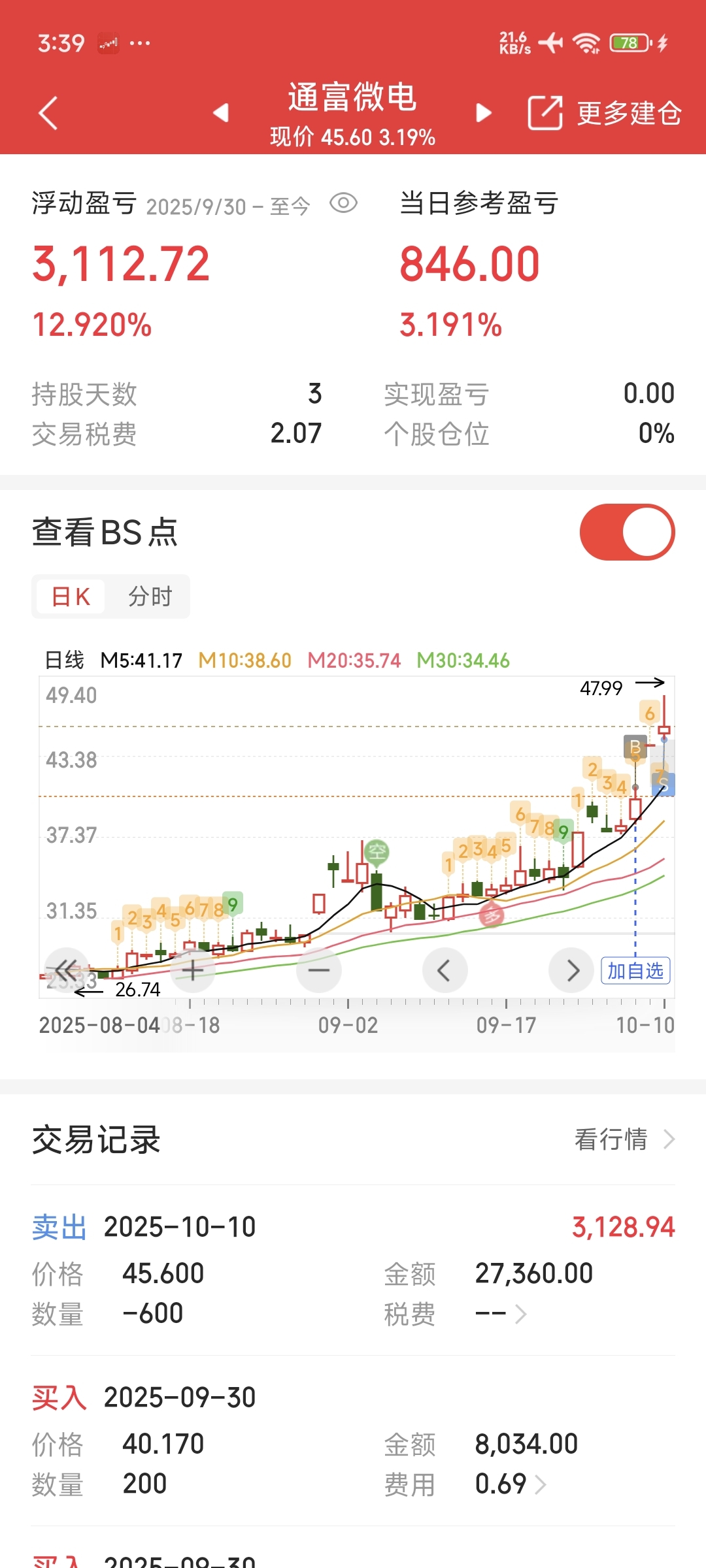 上星期清仓买入通富微电,亏的钱也赚回来了,强子目前真不能买