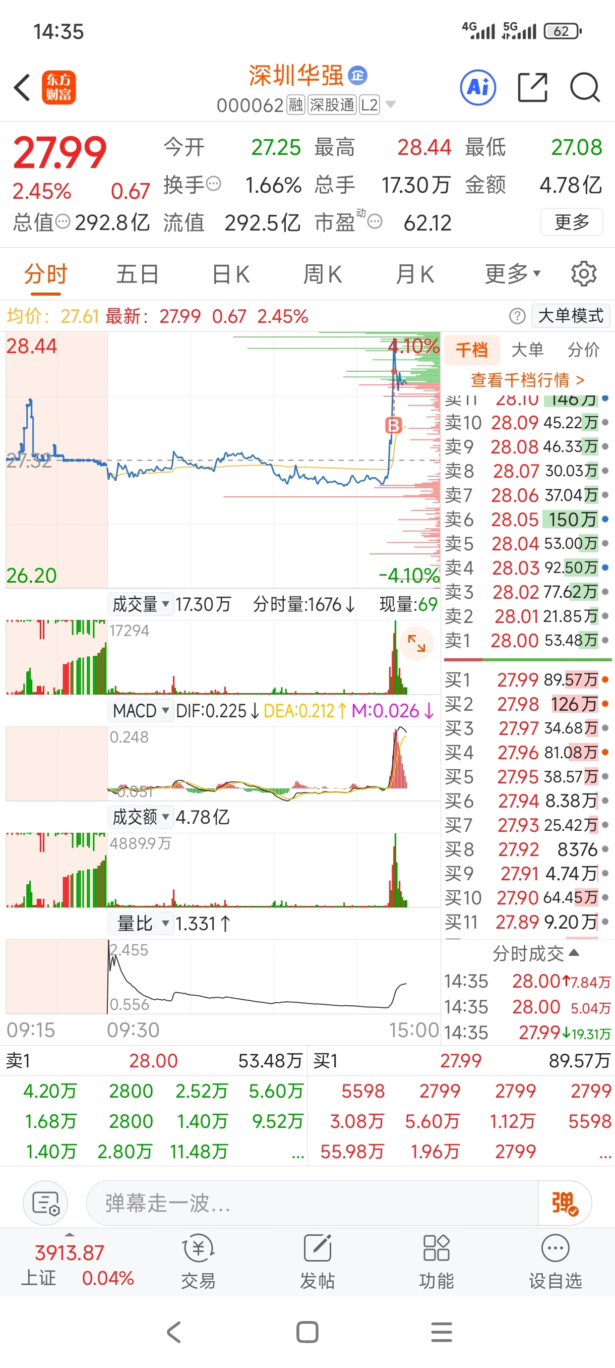 $深圳华强(SZ000062)$ 我把你放心上,你把我挂山顶