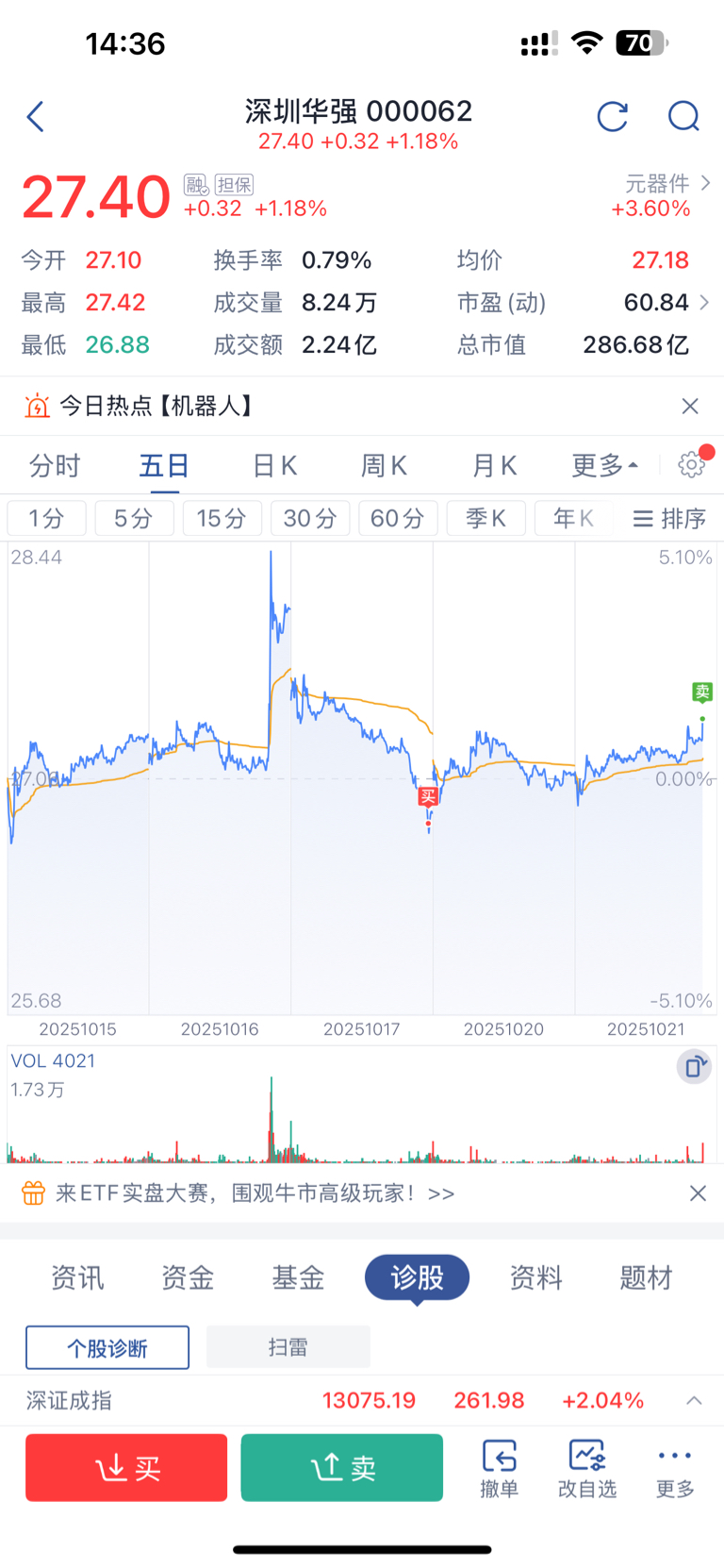 $深圳华强(SZ000062)$ 27.3走了,赚了2100,我害怕明天