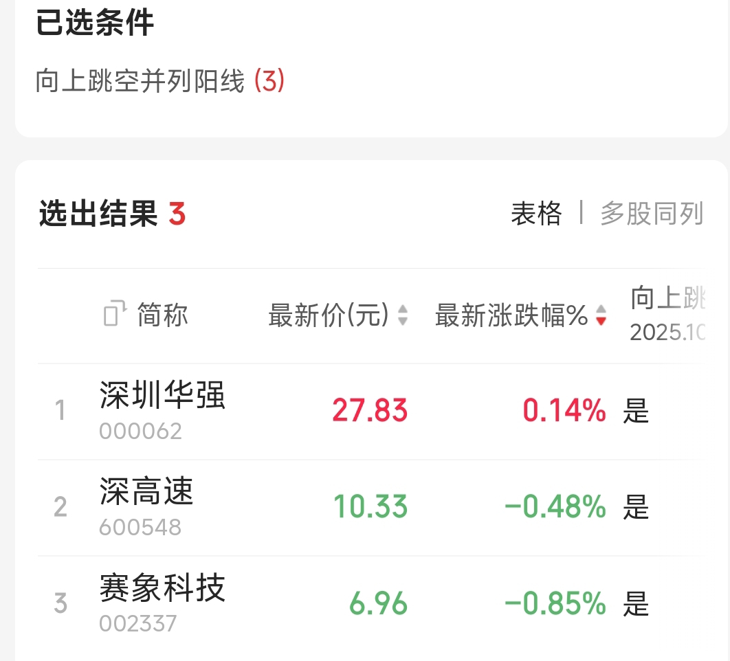 在近期的日K图中,深圳华强出现了清晰的“向上跳空+并列阳线”组合: