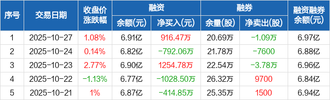 深圳华强:融资净买入916.47万元,融资余额6.91亿元(10-27)