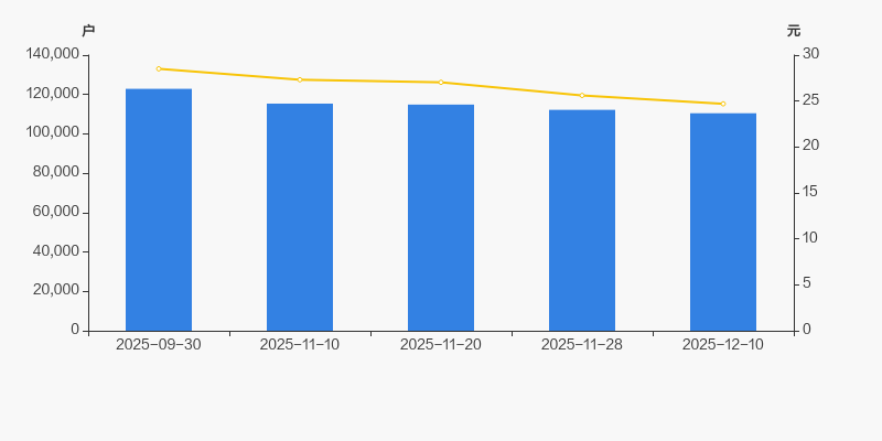 2025年9月30日至今,公司股东户数显著下降,区间跌幅为10.09%。2025年9月30日至2025年12月10日区间股价下降13.35%。