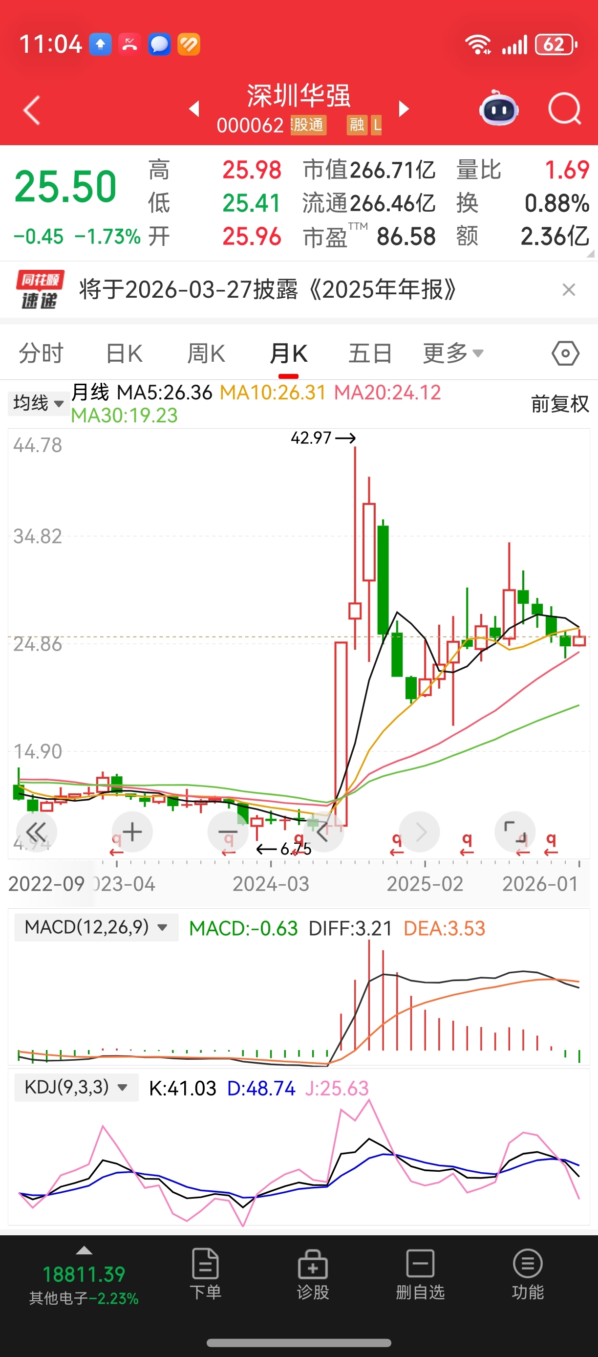 $深圳华强(SZ000062)$ 真恶心,四十多跌到二十多没一个像样的反弹