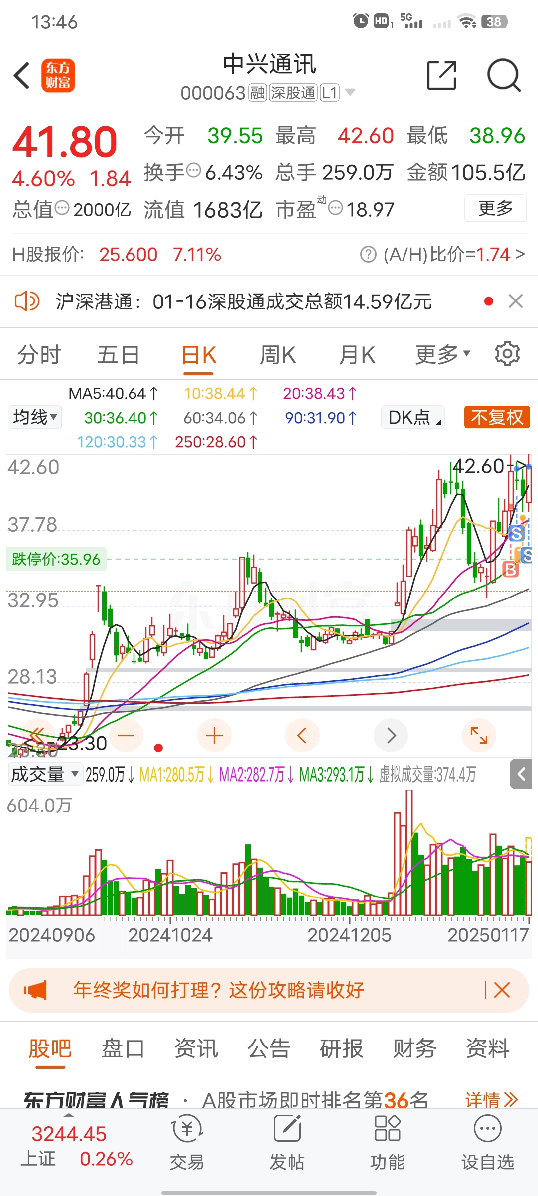 直接减掉半仓,成本33块多,这下又可以坚定持股了,今天新高了,下周继续涨