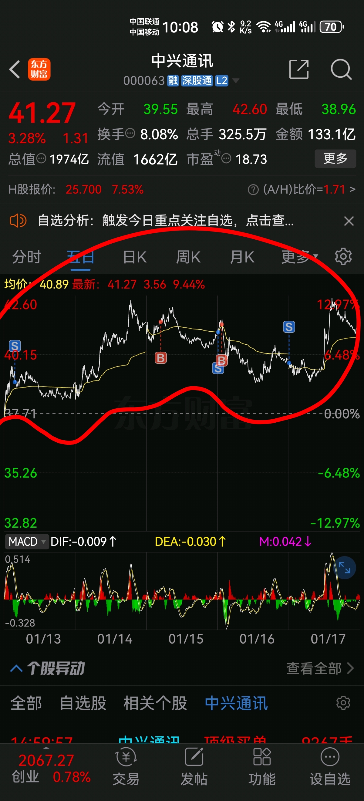 中兴通讯真的是好票可惜我不会低买高卖,只会追涨杀跌这也是我一直亏钱的理由