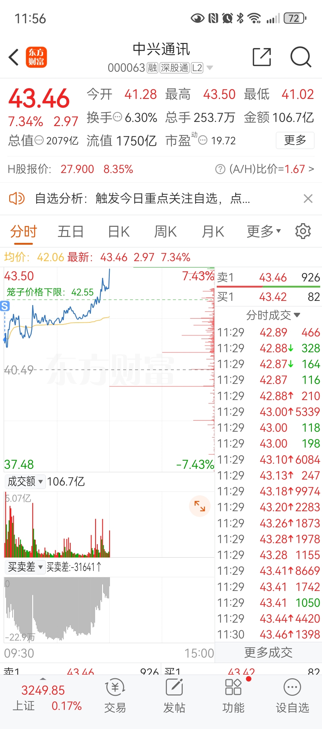 $中兴通讯(SZ000063)$ 开盘卖了半仓,准备T回来,我真手贱,我手贱!我贱!!!
