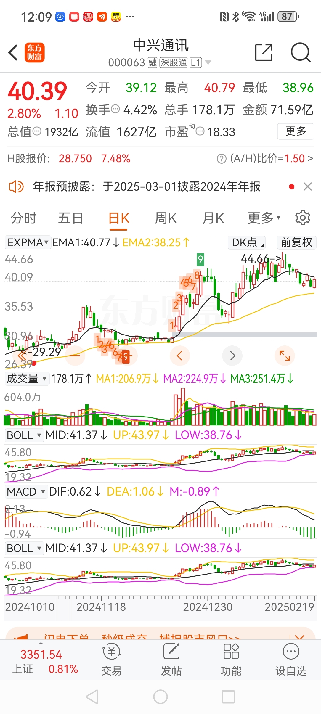 一旦股价被黑线压着就难受但愿黄线撑得住