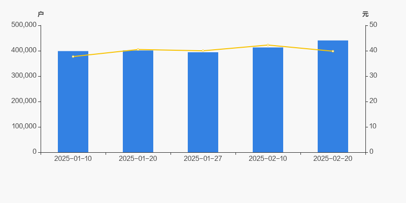 截至2025年2月20日,公司最新A股总股本为47.84亿股,其中流通股本为40.27亿股。户均持有流通股数量由上期的9750股下降至9140股,户均流通市值36.4万元。